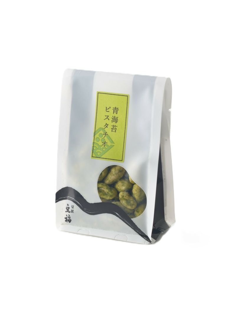 寒梅粉をまぶして直火焙煎した軽い食感のピスタチオに、青海苔で磯の香りを添えました。
