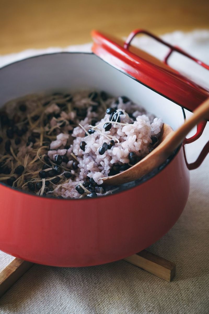 【豆ご飯として】米2合に本品を大さじ2杯入れて炊けば、おいしい黒豆ご飯のできあがりです。