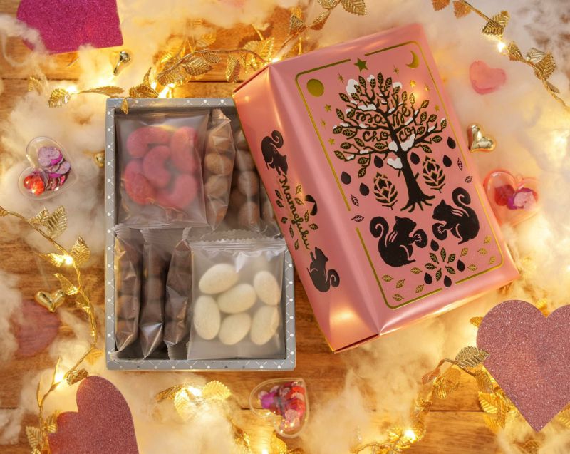 今年もカカオの口溶けと香りにこだわりました。 🍫フランボワーズカシュー 🍫華やかカカオのヘーゼルナッツ 🍫濃厚ミルクアーモンド 🍫塩キャラメルだいず