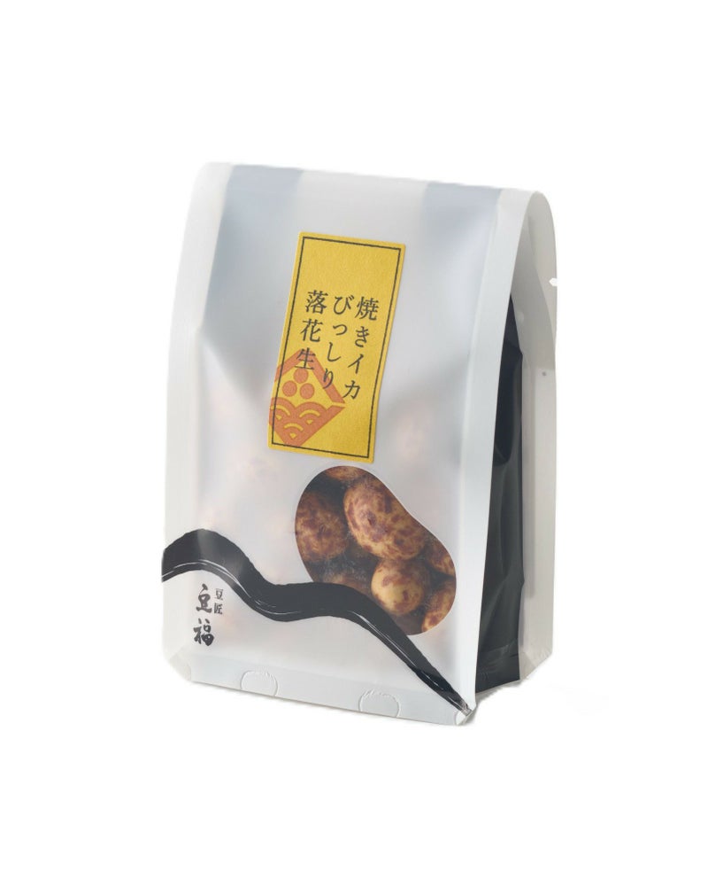 豆菓子の定番を、豆福が考える最高の素材でつくりました。国産スルメイカ、太白胡麻油と沖縄海水塩、千葉県産落花生。